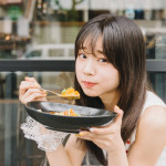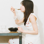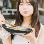 先に述べたイカゲソをスプーンで食べるための少しだけもどかしい瞬間。それを惜しむ気持ちが彼女にお上品を拒否させたのだ。