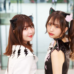 ▼ KAMOがネギをしょってくるッ!!!の雨音まゆさんと夏目ゆりかさん(手前)。SPIRAL GIRLSの百ゆめかさんと小日向ひまりさん(奥)