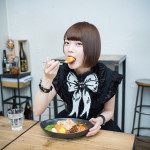 ハムカツに、大好きな唐揚げを乗せて、とにかく高カロリーなガッツリ系のカレーにしたかったです。唐揚げはオフ会でも食べたりするくらい好きなんですよ! そして、女子はチーズが好きだと思うんですけど、食べに来られるファンの方は男子が多いかなと思って、男子が好きそうなバターをトッピングしました。