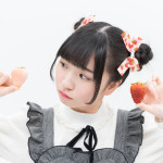 「イチゴが大好き」とのことで、撮影小物も兼ねてイチゴを食べることに。いちど食べてみたかったという白いイチゴには、感動してテンションが上がった様子。パネル撮影用の赤いイチゴ(ひめのか、あまおう)もすべて完食。