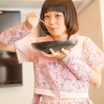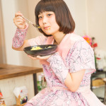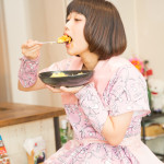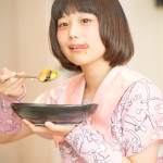 生卵を割る。その緊張と期待が手先と表情に良く表れている。卵を上手に割って彼女にとって至極の一杯を完成させて欲しい! そう願わずにはいられない。カレーのトッピングをする。ただそれだけのことなのに、こちらの応援心が煽られる。彼女の天性のアイドル性が発揮された瞬間とも言える。(カリガリ二木)