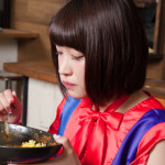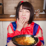 カレーを食べるのではなく、力強く差し出すその姿に彼女のカレーアイドルとしての可能性を見た。21世紀の戦士はこの写真とレトルトカレーを胸ポケットに入れ、戦に出るのである。(泰平)