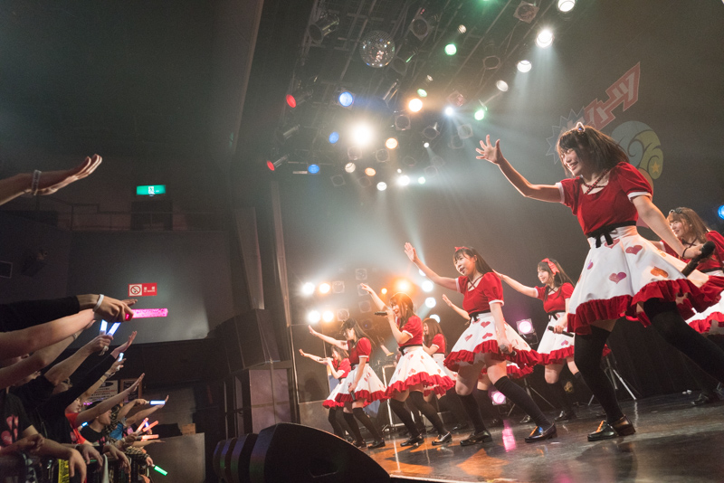 MC後は今回のツアーのテーマソングである「LOVE♡LOVE♡LOVE」を披露!「この曲を通して皆さんに愛をお届けできるようにこのツアー突っ走って行きたい」というリーダー虹香の曲紹介の通りのポジティブさに溢れる疾走感のある曲に会場がひとつになった。